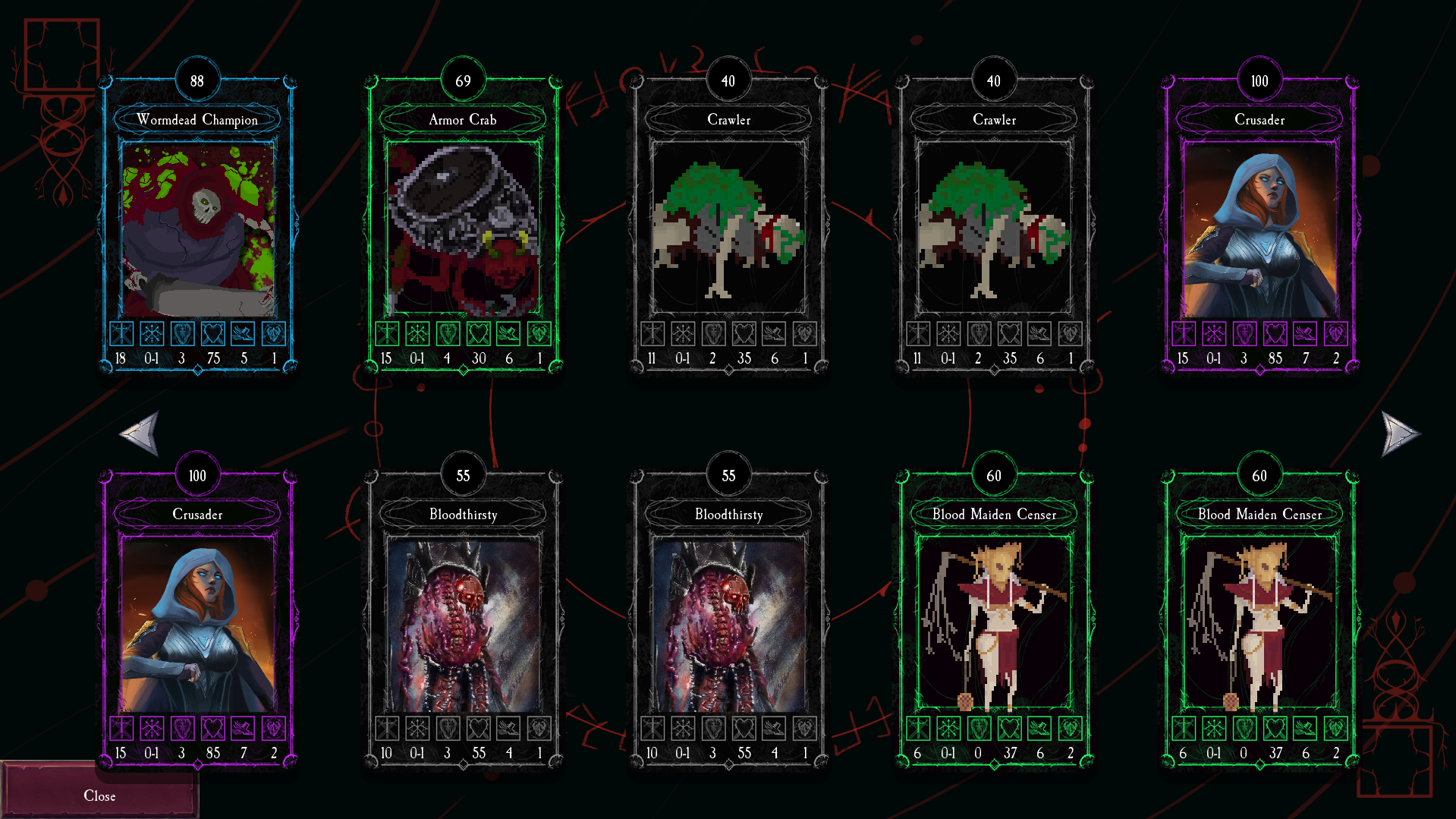 During an encounter your cards will spawn units and building, each with their own stats and abilities. Each death is permanentbut some sacrifice have to be made in order to achieve victory.